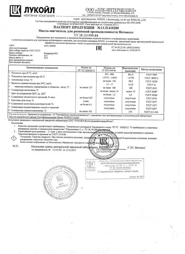 Масло-мягчитель Нетоксол применяют в производстве резиновых изделий, пищевого и медицинского назначения, в качестве компонента для получения ветеринарного вазелина и закалочной среды при вакуумной термической обработке высоколегированных сталей на предприятиях авиационной промышленности и общего машиностроения, а так же в производстве резиновой обуви.