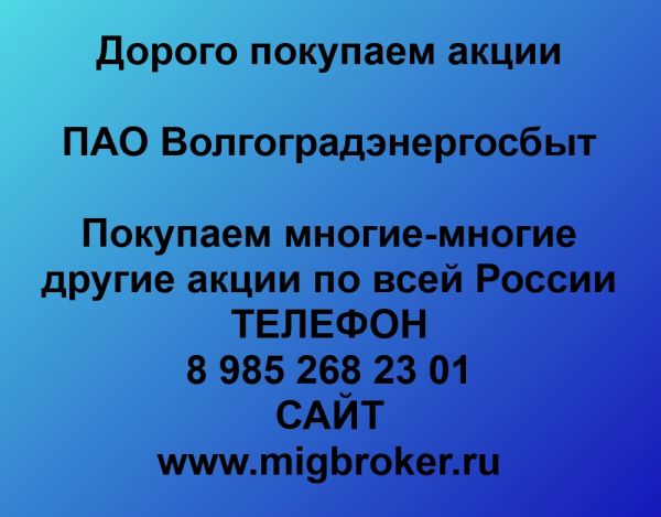 Дорого выкупим акции «Волгоградэнергосбыт». Оплата сразу! Выкуп акций «Волгоградэнергосбыт» по рыночным ценам. Регистрация сделки по продаже акций «Волгоградэнергосбыт» - 20 минут. Если Вы хотите продать акции «Волгоградэнергосбыт» - звоните!
